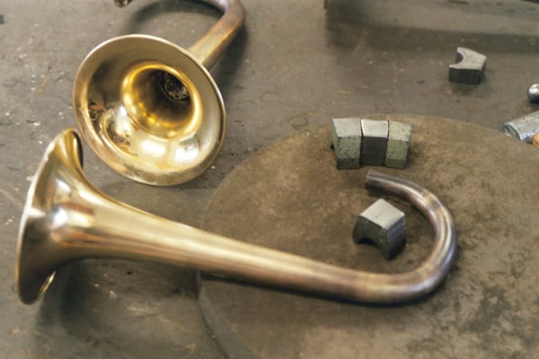 Ricco Kühn Hörner und Trompeten werden in Handarbeit unter Verwendung hochwertiger Materialien und Bestandteile hergestellt. Die Endfertigung und Kalibrierung der konischen Mensurteile sowie der Zusammenbau der Instrumente erfolgt ausschließlich in der eigenen Werkstatt. In der Vorfertigung arbeiten wir mit Lieferanten zusammen, die teilweise auch für größere Hersteller arbeiten und über die nötigen Erfahrungen und technischen Voraussetzungen verfügen. So ist es möglich, handwerkliche Fähigkeiten und größtmögliche Flexibilität mit modernen Fertigungstechniken zu verbinden.